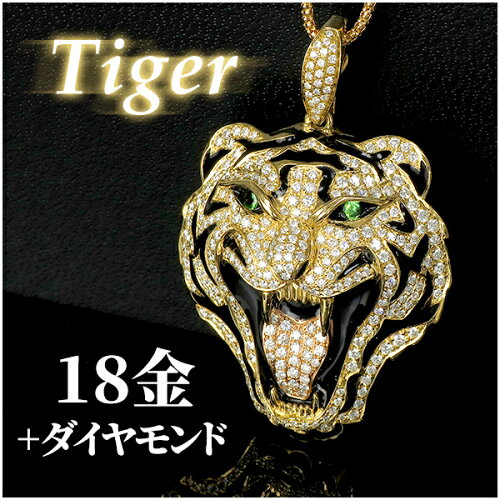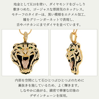 ラグジュアリー ジュエリー 1.5ct ダイヤモンド パヴェ 0.07ct グリーンガーネット アイ タイガー ゴールドネックレス チェーン付き K18 18金 イエローゴールド ピンクゴールド ネックレス 天然石 デザインチェーン 虎 ダイアモンド ブランド 高級 プレゼント 大人 おしゃれ